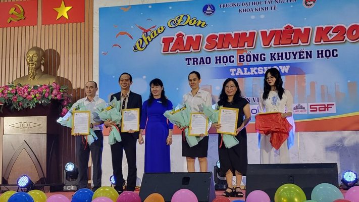 Tối ngày 16/10/2023, tại hội trường của Trường Đại học Tây Nguyên đã diễn ra buổi lễ chào đón Tân sinh viên Khoa kinh tế khóa 2023. Góp mặt tại buổi lễ, Công ty TNHH tư vấn thuế SAF rất hân hạnh đồng hành cùng chương trình. Bà Hoàng Thị Thanh Thủy – Giám đốc công ty TNHH tư vấn thuế SAF đã trao học bổng khuyến học cho các bạn tân sinh viên có hoàn cảnh khó khăn đã vượt khó vươn lên trong học tập.