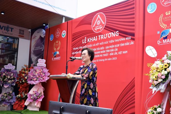 Chủ tịch Hội Nữ doanh nhân tỉnh Đắk Lắk Nguyễn Thị Ngọc Anh phát biểu tại Lễ khai trương